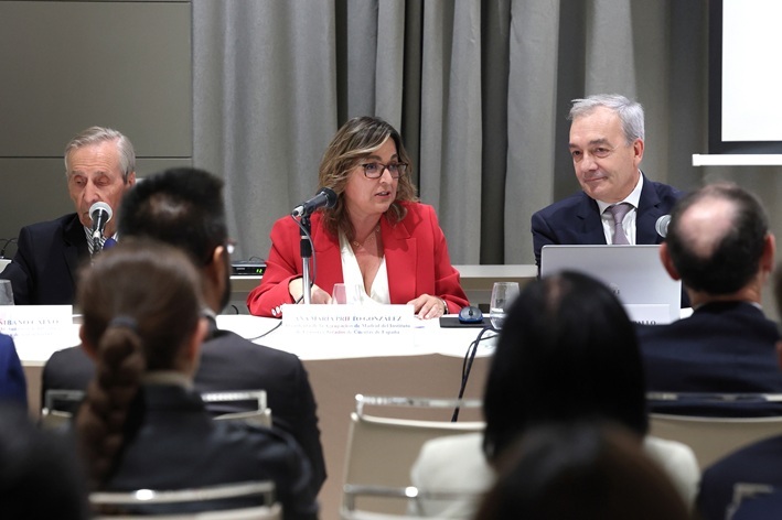 El acto de apertura estuvo a cargo de Ana María Prieto González, presidenta de la Agrupación de Madrid del ICJCE, y de Leandro Cañibano Calvo, director de la Cátedra.