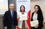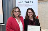 La profesora Mónica López-Puertas Lamy, que avaló el ensayo ganador, recibió también un premio que le fue entregado por la coordinadora del Proyecto Auditoría-Universidad, Begoña Navallas Labat.