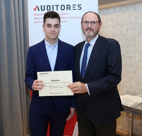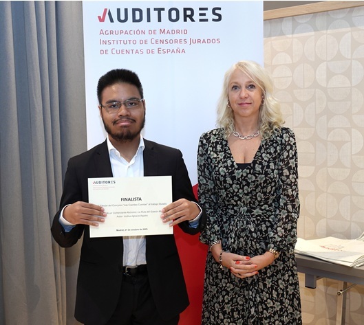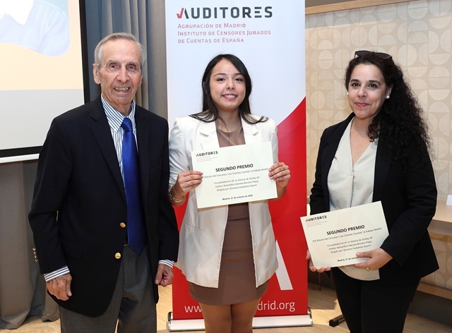 Para terminar, se concedieron sendos diplomas a los otros tres alumnos finalistas. El tercer puesto fue para Silvia Osaretin Omoruyi, estudiante de 4º de Administración y Dirección de Empresas de la Universidad Autónoma de Madrid, por su relato “Romper el Triángulo”; el cuarto puesto correspondió a José Ramón Sanz Solano, estudiante de 4º de Contabilidad y Finanzas de la Universidad Rey Juan Carlos, por su trabajo “Expecto Patrimonium: Las Reliquias de la Contabilidad”; y el el quinto finalista fue Joshua Ignacio Aquino, estudiante de 4º de Administración y Dirección de Empresas de la Universidad Autónoma de Madrid, por su ensayo titulado “Diario de un Comerciante Anónimo. La Ruta del Galeón Manila”.