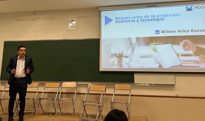 Se pudo contar con la participación de Álvaro Paredes Laínez, auditor junior en KPMG, que expuso la relevancia y utilidad de la auditoría como profesión de interés público mientras que, Wilmer Arley Guevara, senior manager en Moore, compartió con los estudiantes como la tecnología y, en especial la IA, están cambiando la profesión.