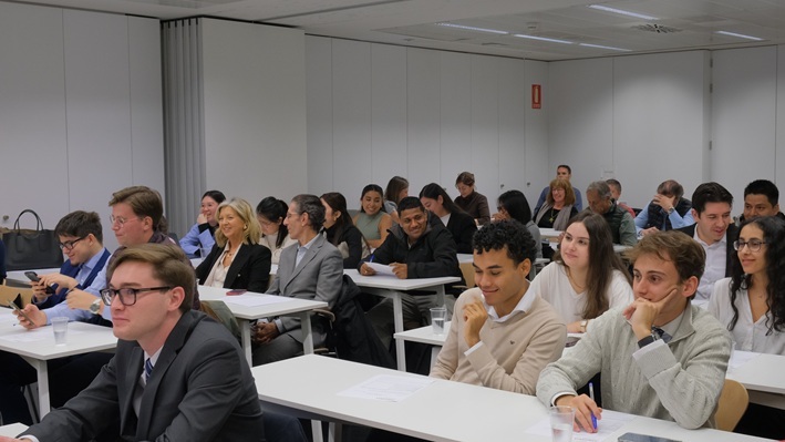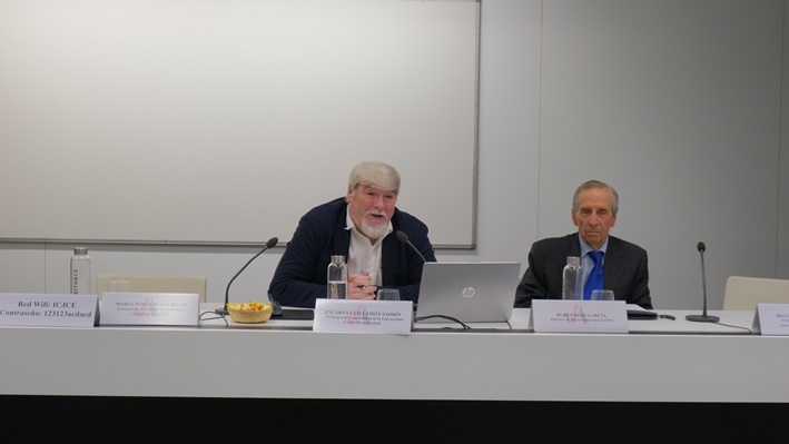 El acto de apertura corrió a cargo de Isabel Velázquez Rivas, vocal de la Agrupación de Madrid del ICJCE, y de Leandro Cañibano Calvo, director de la Cátedra.