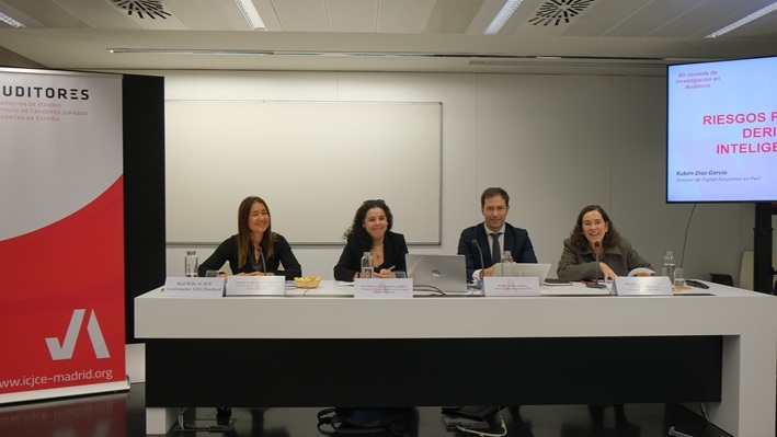 Tras una pausa para el descanso, dio comienzo la segunda mesa redonda. El  tema abordado fue el titulado: “Riesgos para la Auditoría Derivados de la Inteligencia Artificial”. La moderación de la misma estuvo a cargo de Begoña Navallas Labat, profesora de la Universidad Autónoma de Madrid. En esta ocasión, las ponentes fueron Rubén Díaz García, director de Digital Assurance en PwC; Encarna Guillamón Saorín, profesora de Contabilidad de la Universidad Carlos III de Madrid; y Marta Pérez-Beato Bello, secretaria de la Comisión de Innovación y Tecnología del ICJCE.